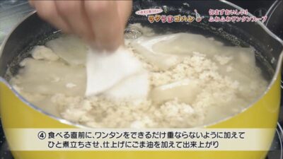 - ワンタンを包む手間をカットして、お口に入ればワンタンスープに!
