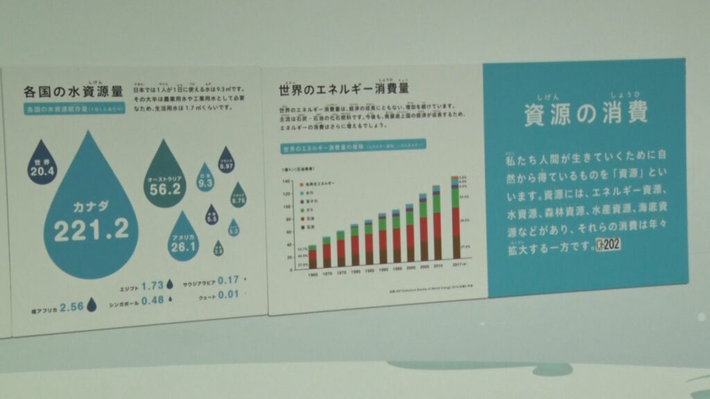 地球の仕組みや環境問題について分かりやすく学べる展示コーナーです。