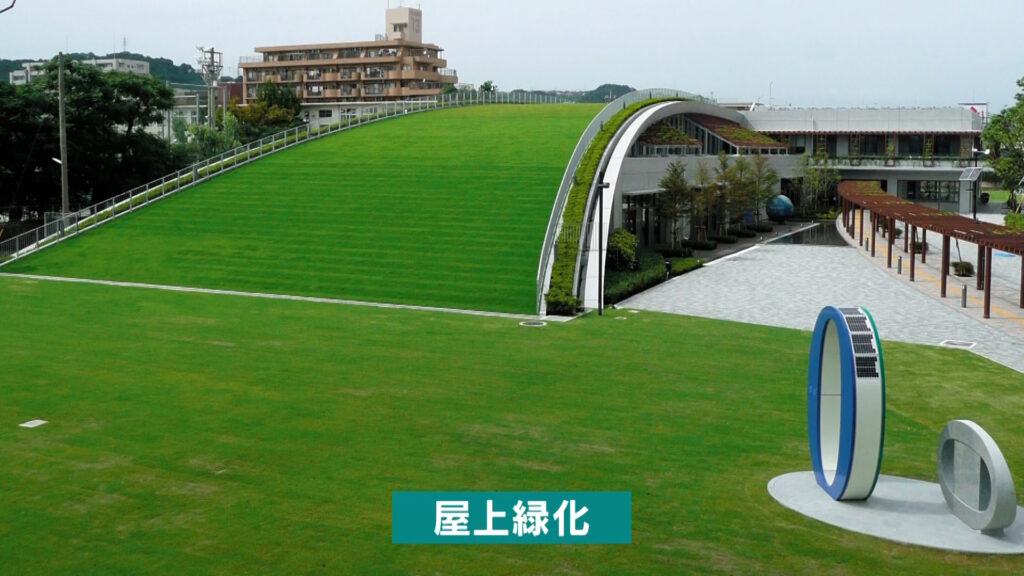 屋上緑化、太陽光発電、雨水利用など、 自然のエネルギーを有効活用しています。