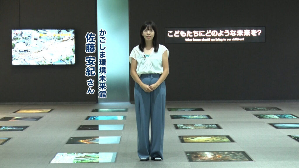 佐藤さん 「かごしま環境未来館の佐藤です。当館は市民の皆様に、環境問題についての興味関心を抱いていただき、日常生活の中での具体的アクションを促す施設です。」